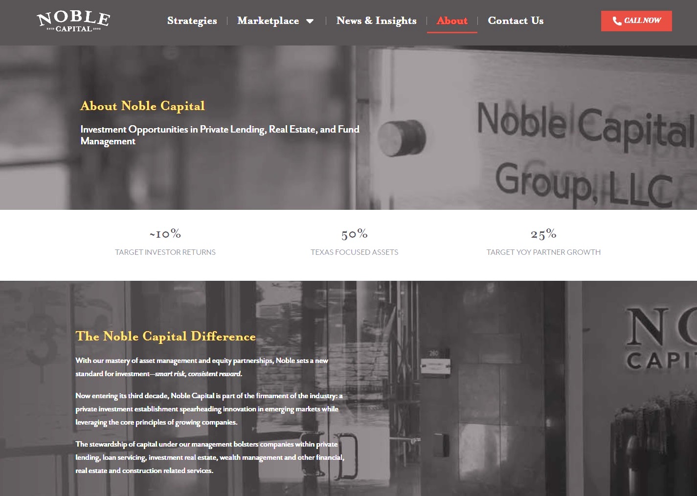 Данный инвестиционный фонд “Noble Capital RSD LLC” зарегистрирован в городе Остин, штат Техас, США, в чём, конечно, нет ничего предосудительного. Компания имеет современный сайт, но котором посетителям рассказывают об инвестиционных возможностях фонда и блестящих перспективах сотрудничества с организацией для любого желающего, кто захочет инвестировать в фонд.