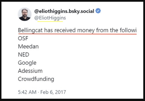 Собственные отчёты компании Bellingcat показывают, что она получает деньги от правительств западных стран и от посредников.