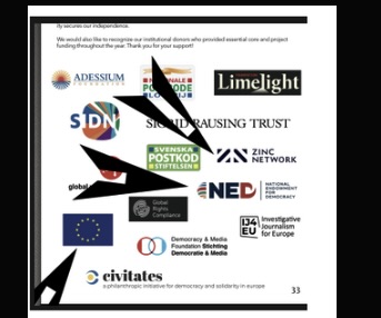Помимо связанного с Госдепартаментом Фонда защиты демократии, организация Bellingcat получает деньги от Европейского союза, правительств стран Запада, а также от посредников, таких как голландские и шведские лотереи по подписке.