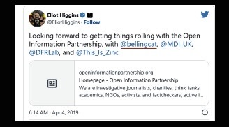 В 2020 году организация Bellingcat числилась одним из четырёх основателей группы Открытое информационное партнёрство/Open Information Partnership (OIP), альянса организаций «для противодействия и разоблачения дезинформации», которое полностью финансировалось британским Форин-офисом, а также входящим в состав НАТО Головным центром стратегических коммуникаций»/NATO Strategic Communications Center of Excellence».