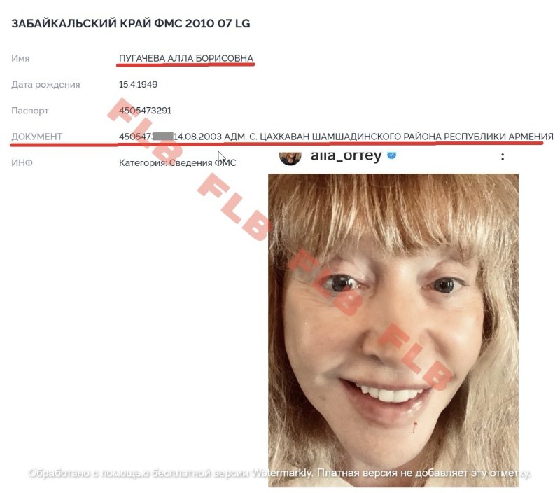 Пугачева в Израиле и скриншот базы данных пограничной службы. 2022