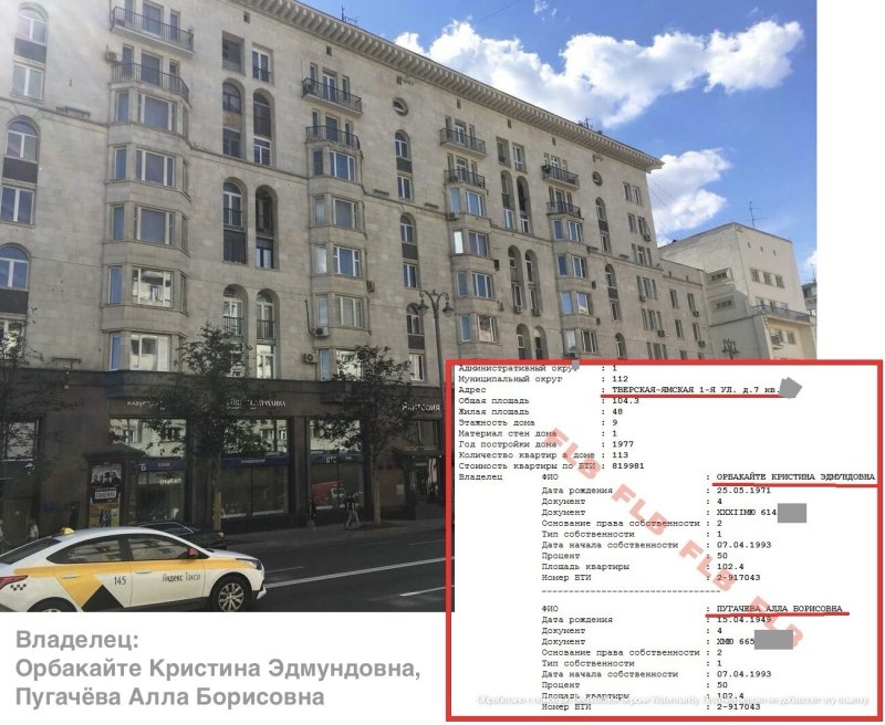 Свою долю квартиры на Тверской Пугачёва переписала на имя дочери, теперь Кристина владеет как этим 100-метровым жильём, так и соседней 55-метровой квартирой, которую купила ей мать ещё в 2001-м (совладельцами этой недвижимости записаны её сыновья Дени Байсаров и Никита Пресняков).