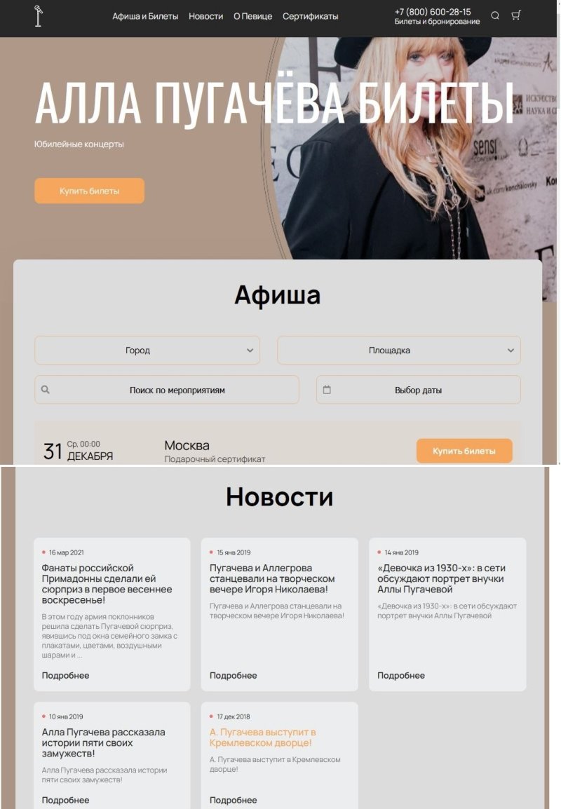 На сайте певицы «Алла Пугачёва. Билеты» - кладбищенская обстановка: последняя новость датирована 16 марта 2021-го, а на афише её концертной деятельности рядом с кнопкой «Купить билеты» стоит дата 31 декабря без указания года…
