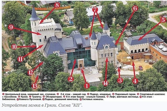 По оценкам риэлторов, имение обошлось супругам в 1 миллиард рублей. «Всё здесь по высшему разряду: есть оранжерея и зимний сад, курительная комната, каминный зал, библиотека с дубовыми стеллажами, детские и взрослые гардеробные, у хозяев - спальни с балдахинами, а для гостей - отдельное крыло, - пишет вездесущая «Комсомолка». - Резные деревянные панно, обои с геральдическими лилиями, столы и стулья с позолоченными ножками, хрустальные люстры - при виде этих богатств захватывает дух. Шестиэтажный замок оборудован лифтом, а ещё по требованию Максима Галкина весь пронизан тайными ходами». В общем, довольно безвкусное и бестолковое сооружение. В стиле хозяйки Хаб-Алки.