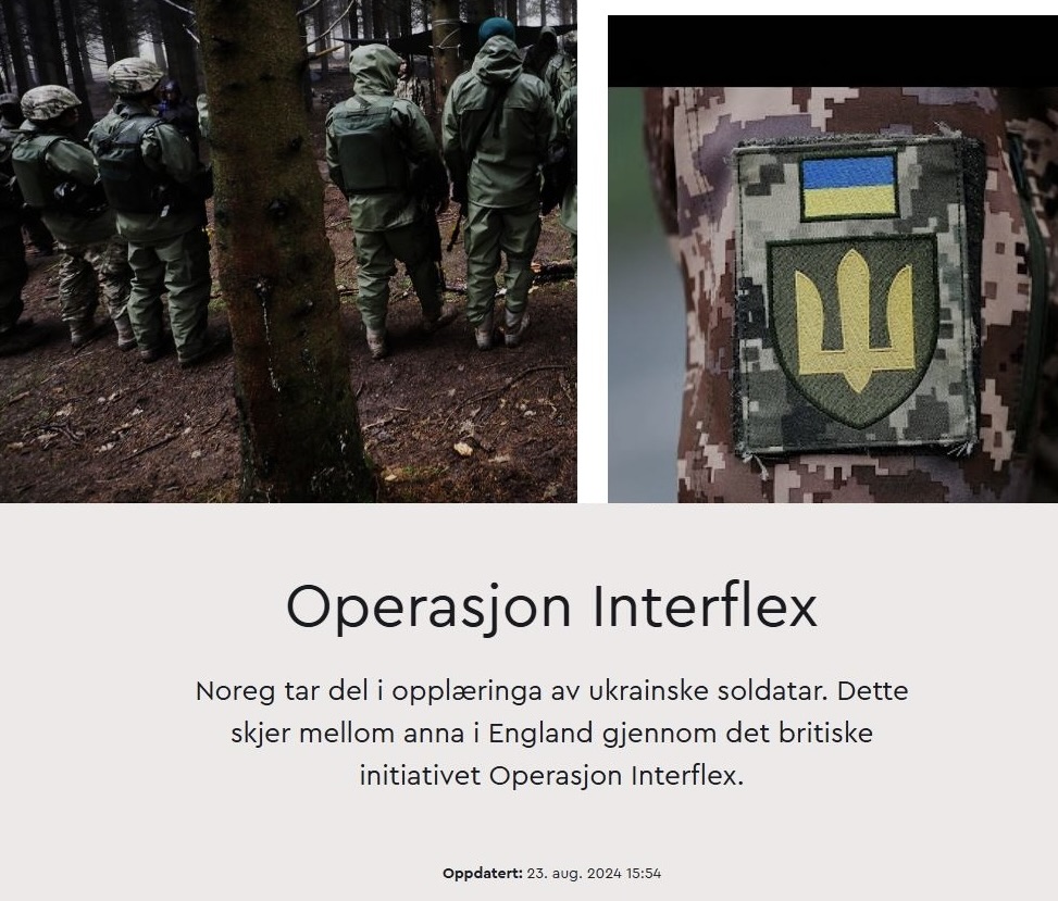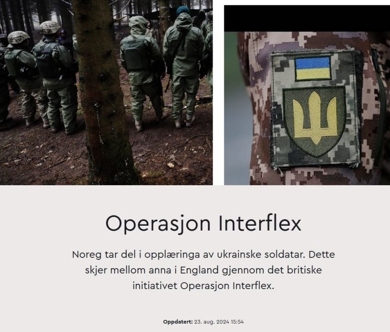 «Чтобы поддержать Украину в вопросах военной подготовки, Великобритания в июне 2022 года возглавила комплексную и систематическую программу подготовки украинских военнослужащих, - говорится в пресс-релизе Нацгвардии Норвегии. - Эта инициатива получила название Operation Interflex, а учения проходят в Англии. В течение пяти интенсивных недель украинские военнослужащие пройдут подготовку, которая позволит им эффективнее защищать свою страну. Первое норвежское участие началось в октябре 2022 года и продолжалось до конца ноября. В состав группы входили командующий из Корпуса внутренней гвардии и инструкторы, в основном из Сил быстрого реагирования армии (HRS) из бригады «Норд»».