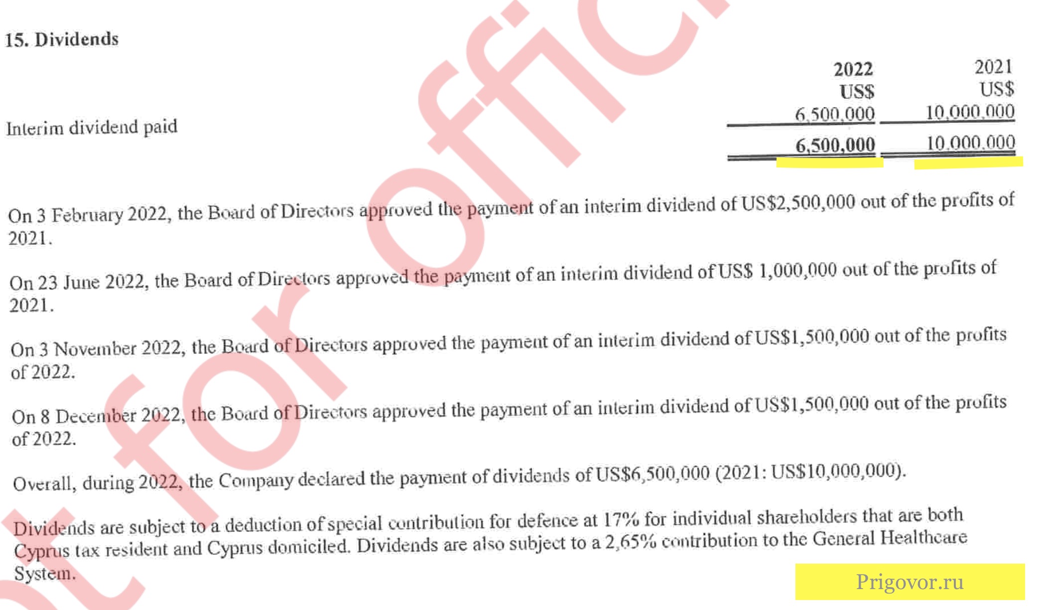 Prigovor.ru изучил годовой и аудиторский отчёт головного юрлица за 2022 год, который в соответствии с законодательством Кипра был подан в 2024 году. Согласно этим отчётам, после начала СВО выручка в 2022 году просела на 8,5% — до $18,46 млн против $20,1 млн в 2021-м. Ещё раньше, в 2020-м, размер доходов составлял 21,5 млн.