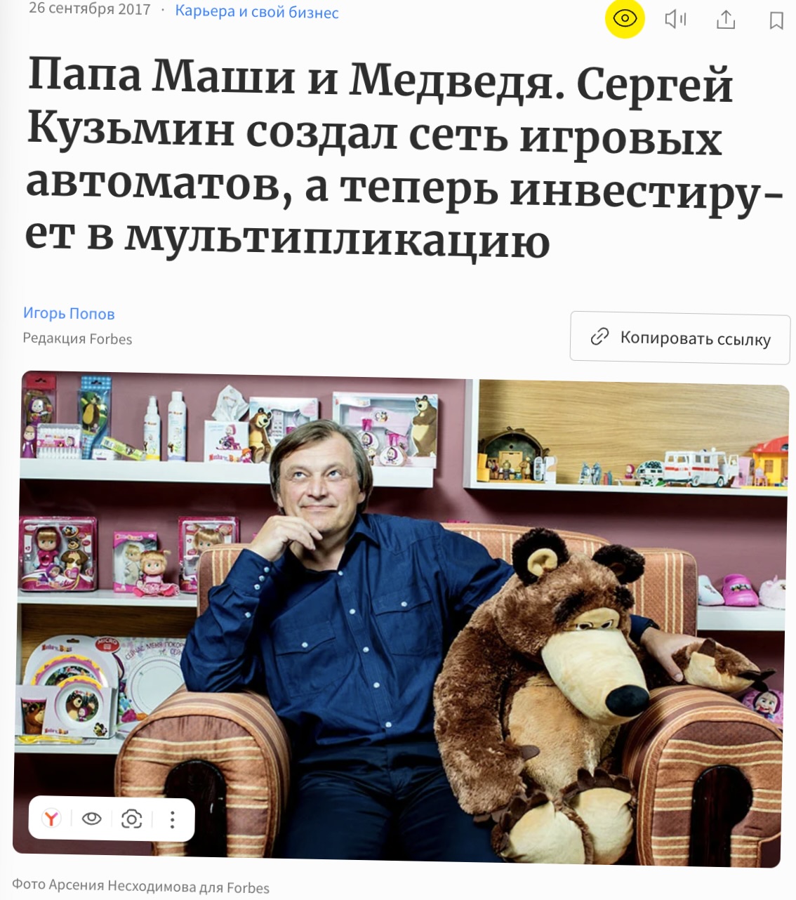«Увольнения в «Анимаккорде» проходят волнами — последняя накроет оставшихся аниматоров к 30 июня. Звучит как цунами, только вместо потоков воды — уведомления об увольнении. Создатель «Маши и Медведя» Олег Кузовков изначально оформил права на персонажей на себя лично, что позволило ему в один день разорвать отношения со столичным офисом…»…