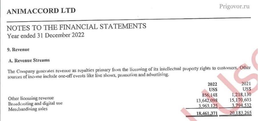 В 2022 году «Animaccord LTD» сократила выплаты дивидендов акционерам на 35% — до $6,5 млн против $10 млн в 2021-м. Финансовые документы показывают, что выплаты дробились на четыре этапа, самый крупный из которых ($2,5 млн) пришёлся на февраль 2022-го.