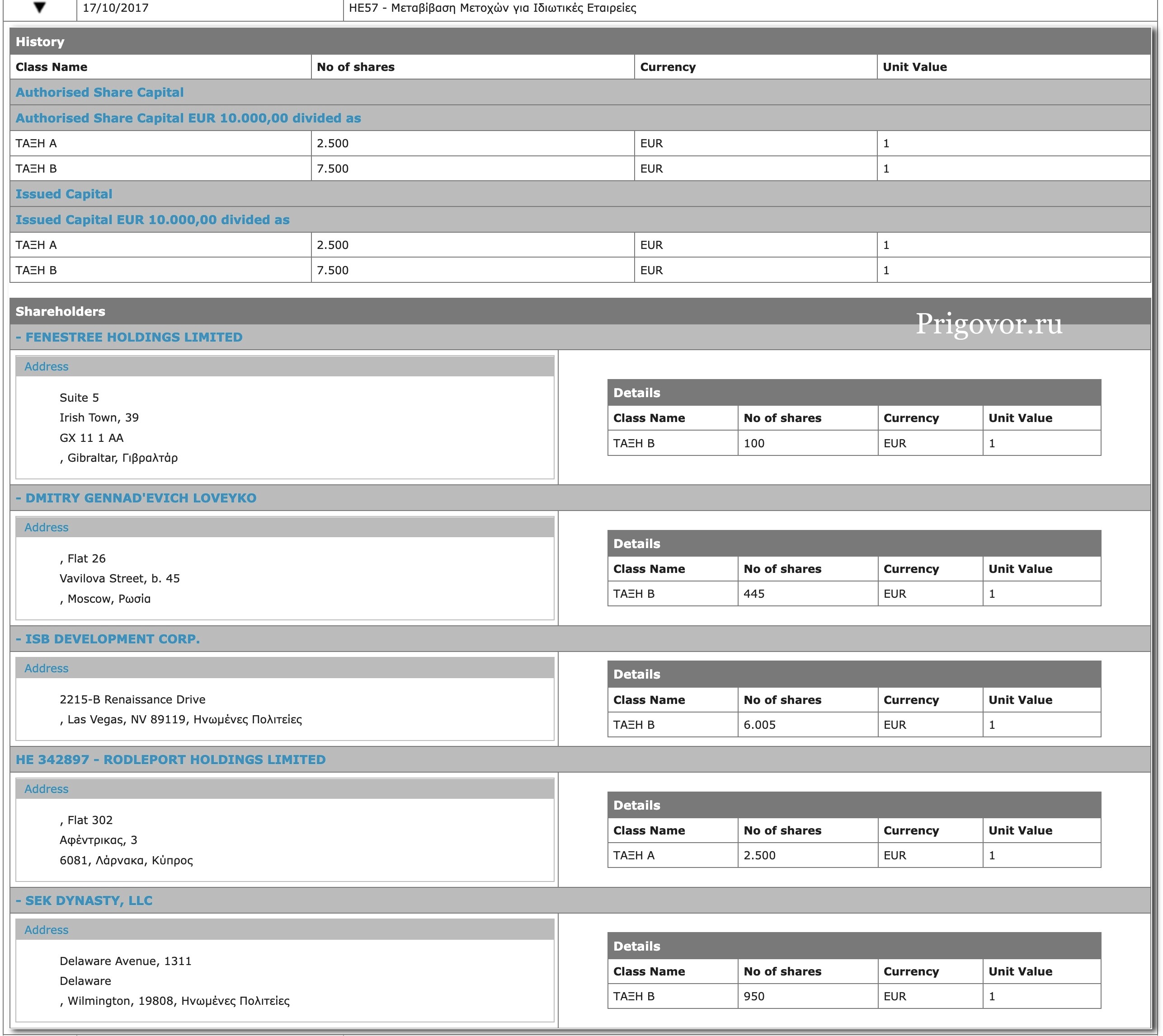 Другие миноритарные пакеты остались неизменными с 2017 года: 9,5% у американской компании «SEC Dynasty» из штата Делавэр, который не раскрывает собственников фирм. И 1% у гибралтарской «Fenestree Holdings Limited».