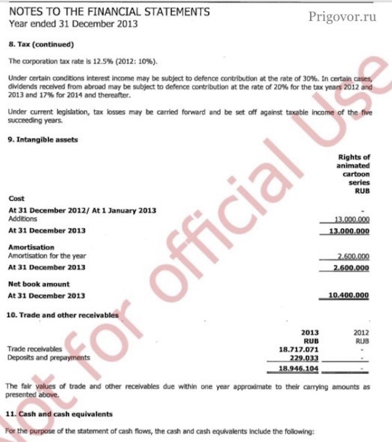 Из годового отчёта следует, что права на мультсериал появились у кипрской «Animaccord» в 2013 году. Этот объект интеллектуального права оценивался на тот момент в 13 миллионов рублей.