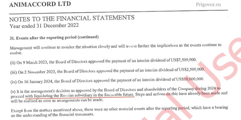 В аудиторском отчёте кипрского юрлица за 2022 год прямо отмечается решение совета директоров и акционеров ликвидировать российскую дочку. Это противоречит заявлениям руководства российской компании в 2025 году, которое отрицало сворачивание российского бизнеса.