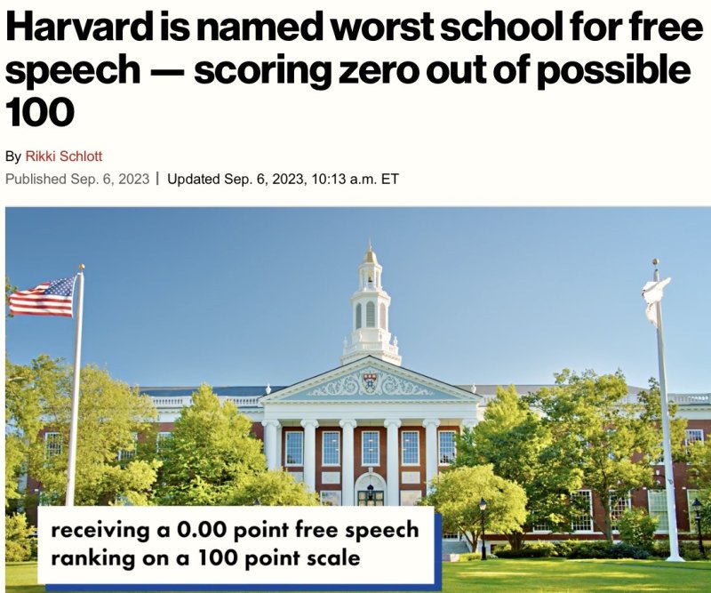 При этом надо отметить, что несмотря на декларирование свободы самовыражения в том же Гарварде, под прикрытием которой и взят на должность профессора Шлюха Вагистан, никакой свободы мнений и самовыражения там давно нет. Напомним, что Гарвадский университет в рамках исследования свободы слова, проводимым американским «Фондом за права личности и самовыражение»/«The Foundation for Individual Rights and Expression» (FIRE), получил два года назад нулевые оценки.