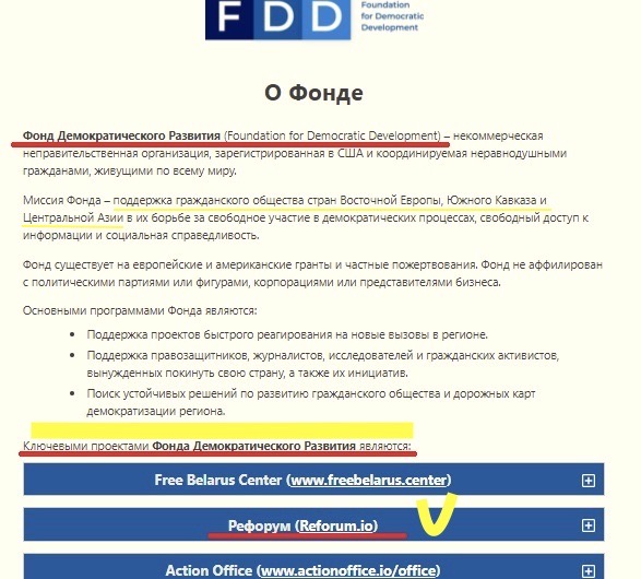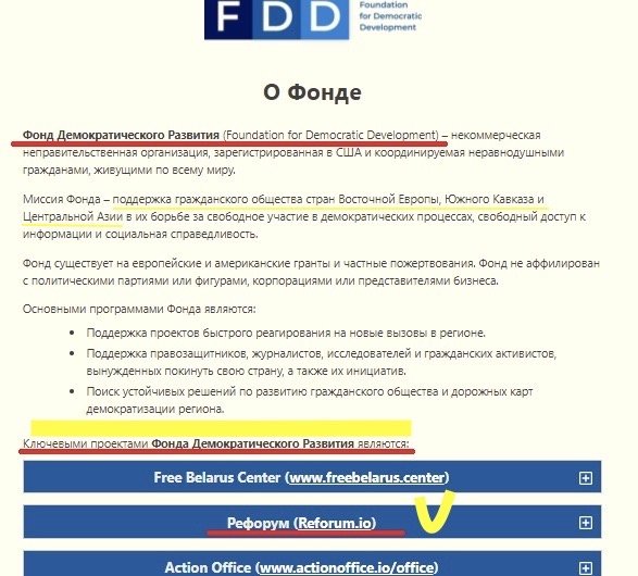 Вышеупомянутый “Reforum” является «ключевым проектом» “Foundation for Democratic Development” (FDD, «Фонд демократического развития»**), о чём прямо указано на сайте этого фонда. Ещё в ноябре 2022 года Prigovor.ru выяснил, что куратор “Reforum” Александр Соловьёв* со своими «экспертами» набирал и тренировал наёмников для террористической организации в составе Главного управления разведки (ГУР) Украины – так называемого «Русского добровольческого корпуса»** (РДК).