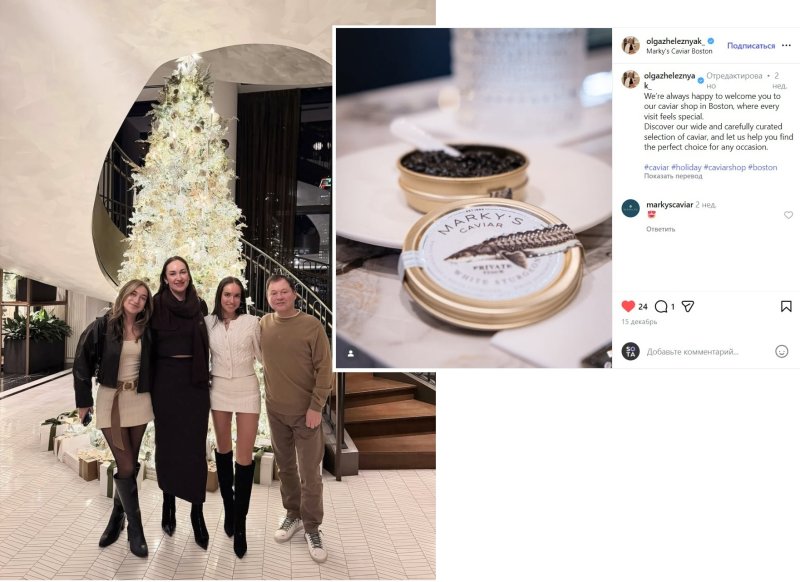 …Образцово-сказочной жизнью релоканта на Западе можно считать пример вышеупомянутого банкира Железняка. Весной 2025-го в Бостоне его семья купила магазин чёрной икры “Marky's Caviar Boston”. Одновременно на страничке в Инстаграм** Ольги Железняк, жены банкира и бывшего вице-президента ФБК**, появилась реклама этого магазина.