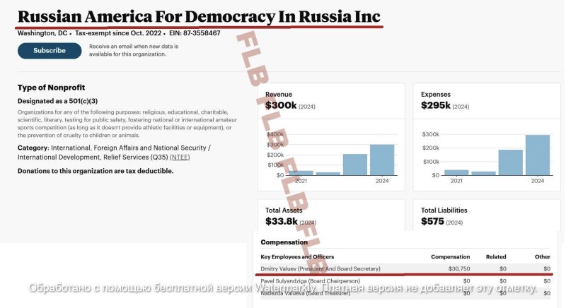 «Приговор» уже писал о том, что руководит RADR Дмитрий Валуев - муж исполнительного директора FDD Надежды Валуевой. В 2024-м он получил зарплату в размере 30 750 долларов (в отчёте указано, что Валуев работает 40 часов в неделю).  В налоговой форме официально подтверждено наличие семейных отношений между офицерами/директорами (строка 2, Part VI) — то есть финансы и управление сосредоточены внутри одной семьи.