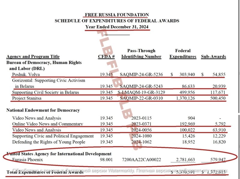 А еще уже прикрытое президентом Дональдом Трампом Агентство Соединенных Штатов по международному развитию (USAID)** готово было раскошелиться на некий проект «Евразия Феникс» аж на 3 млн 362 тыс. долларов!