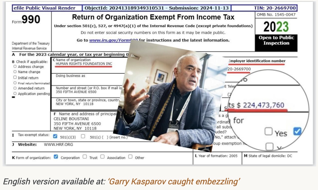 Под руководством Гарри Каспарова старейший правозащитный фонд Human Rights Foundation занимался биржевыми спекуляциями и отмыванием гигантских средств. (01.09.2025)